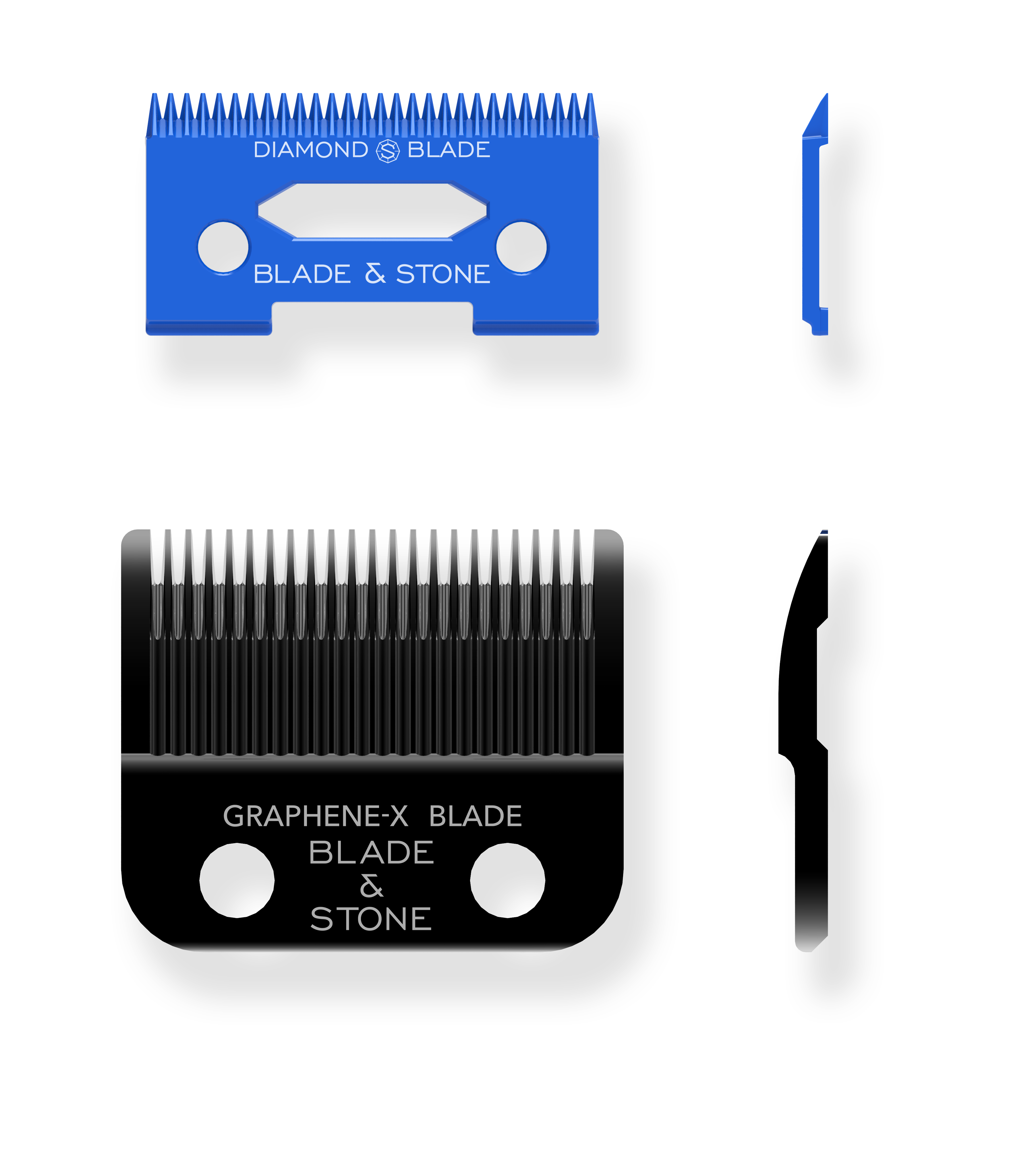 Introducing Blade & Stone™ Professional replacement blades, crafted by seasoned experts and world-class engineers with barbers and their clients in mind. Built from the ground up, our blades feature the latest technology including Diamond-S™ and Graphene-X™. Designed for precision and efficiency, Blade & Stone tools empower you to debulk, cut, fade, and style with unmatched craftsmanship.