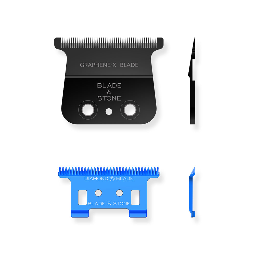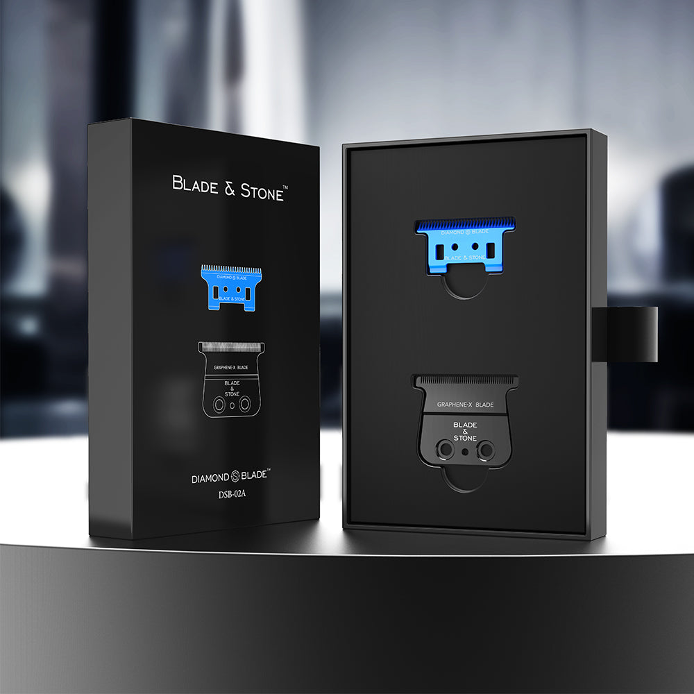 Introducing Blade & Stone™ Professional replacement blades, crafted by seasoned experts and world-class engineers with barbers and their clients in mind. Built from the ground up, our blades feature the latest technology including Diamond-S™ and Graphene-X™. Designed for precision and efficiency, the Blade & Stone trimmer blades empower you to create detail lines and sharp edges.